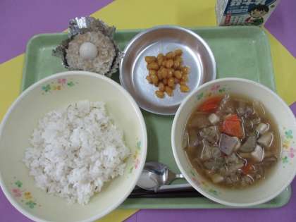 10月15日(金) 今日の給食 公開日 2021/10/15 更新日 2021/10/15 給食室より 10月15日(金)<今日の献立> ・麦ごはん ・お月見蒸し ・けんちん汁 ・ぶどう豆 ・牛乳 *10月18日は十三夜です。満月よりも少しかけているのが、またそれも風情があってきれいだそうです。 しゅうまいの具を一つづつ丸めて、もち米をつけうずらのたまごをお月様に見立てて作りました。きれいなお月様が見られると良いですね。 いいね(0)