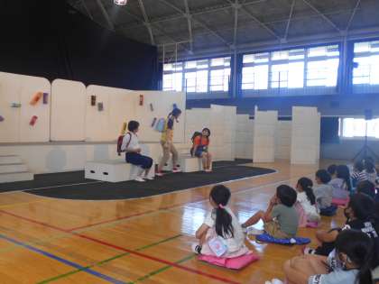 3,4時間目は1〜3年生の鑑賞でした。みんな最後まで集中して劇の世界を楽しんでいました。途中、弐分方小の先生1名が登場するシーンもあり、盛り上がりました。