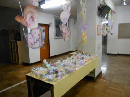 展示も準備万端(2) 公開日 2021/11/17 更新日 2021/11/17 学校生活より 東昇降口には、それぞれの劇を応援する作品が飾られています。 1年生から6年生へは「ねこちゃん」 3年生から4ねんせいへは「タイムマシン」 5年生から2年生へは「おさかな」 それぞれの劇にちなんだ楽しい作品になっています。 家庭科室前には、5年生の家庭科作品「ナップザック」が並びました。 オリジナルのワッペンがすてきです。 いいね(0)