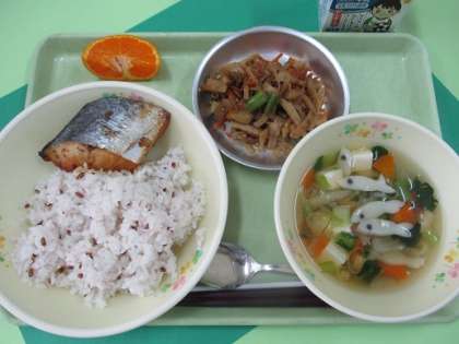 5月6日(金) 今日の給食 公開日 2022/05/06 更新日 2022/05/06 給食室より 5月6日(金)<今日の献立> ・赤米ごはん ・さわらのてりやき ・たけのこのきんぴら ・端午のすまし汁 ・カラオレンジ ・牛乳 *5月5日の「端午の節句」は、男の子の健やかな成長を願ってお祝いする行事です。 いいね(0)