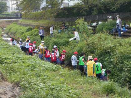 4年生が総合的な学習の時間の授業で「大沢川探検」をしました。
