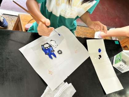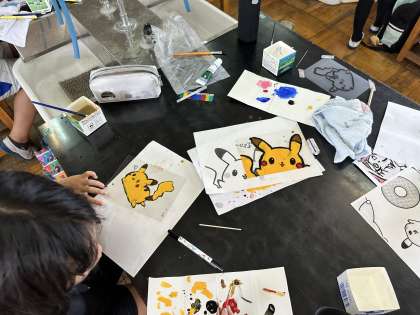 好きなキャラクターやオリジナルのデザインを筆を上手に使って描いていました。