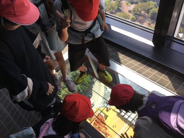 東京タワーに着きました。600段の階段を登り、メインデッキまで行きました。メインデッキでは、スカイウォークをみんなで覗きにこみました。お昼を食べて、これから浅草に向かいます。