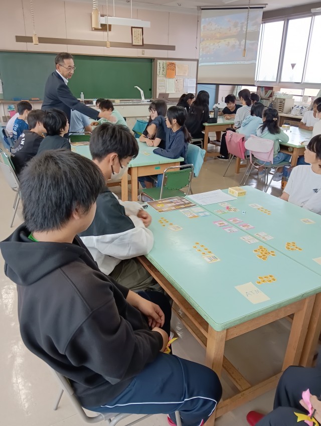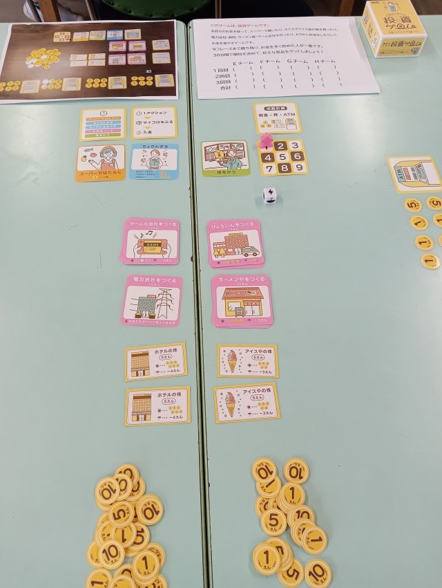 6年1組となのはなの6年が4校時に髙坂様を講師に投資ゲームによるキャリア教育授業を体験しました。就職・お店づくりの起業・株投資・貯蓄等の将来生計のカードとサイコロによるゲームです。サイコロには、晴れ・雨・雷など様々な生活上の良い時や試練の時が発生します。様々な生活上の課題や試練、チャンス到来を考えてゲームを進めます。楽しみながら自分の将来生計を考えました。