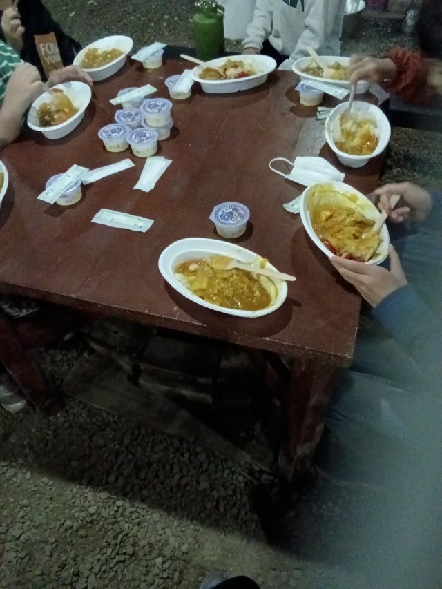 いただきます!どのグループもバツグンのカレーが出来上がりました。美味しい!!の声があがりました。ただ、「お母さんのカレーの味を思い出して、お母さんに会いたくなったよ。」と涙ぐむ子もいました。