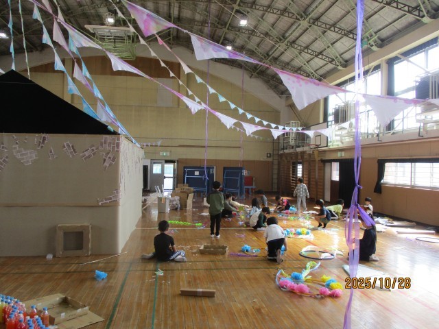体育館での体育授業や地域開放も一時中止とし、準備を進めています。今年の特色は、3年前度同様に地域・保護者・都立富士森高校の皆様方の作品もお借りしたコーナーとともに、北校舎4階の家庭科室で参観される方々の参加のワークショップの実施、北校舎に4階に向かう階段に掲示された児童・教職員の「私の好きな長房小学校の光景」、そして、体育館の屋根まで高さと広がりをいっぱいに活用した展示棟工夫を凝らしております。準備の一こまを写真にてお楽しみください。ぜひ、ご参観の程をお願いいたします。