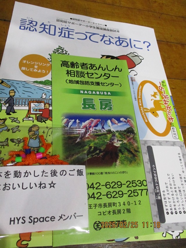 本日は、【八王子市高齢者あんしん相談センター長房】の皆様と地域ボランティアの民様とのご支援で、1組となのはな学級の5年生と6年生が特別授業を受けました。授業は、認知症サポーター養成講座と車いすを使ったボッチャ競技体験です。子どもたちの感想では、「地域でお年寄りの方がどんなことに困っているのかを知ることができてよかった。家族が認知症をなった時、相談できること場所が長房地区にあることが分かった。お年寄りや車いすの方に親切にしたい。」など、高齢者や車椅子の利用者の方々、子どもたち自身がこれからの未来・将来においての高齢社会等について興味・関心をもてるよう、貴重なご指導をいただき、誠にありがとうございました。
