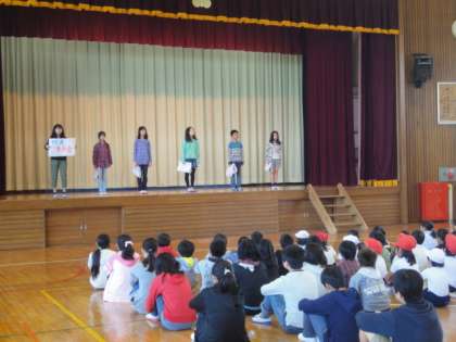 4月22日(水)児童集会がありました。今回は、各委員会の代表による紹介がありました。