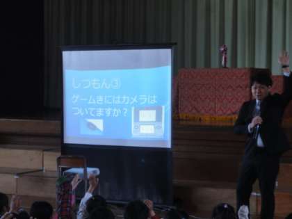 生活指導部から「SNSルール」を映像クイズを交えて伝えました。