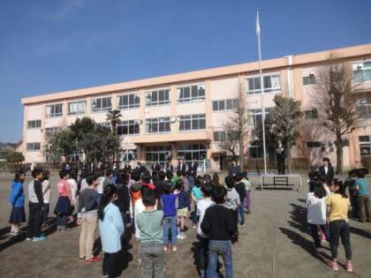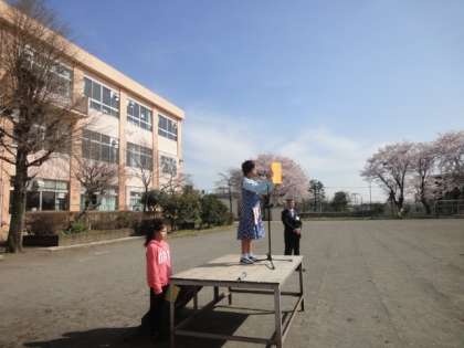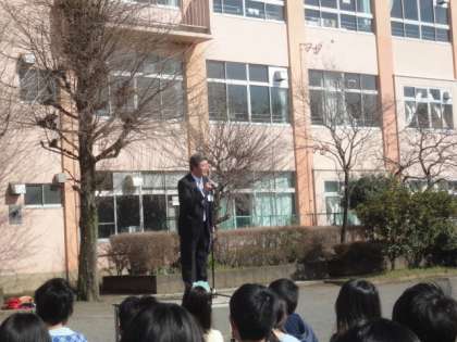 始業式の様子です。「新しい出会い」の場となりました。児童代表の決意がすばらしかったです。