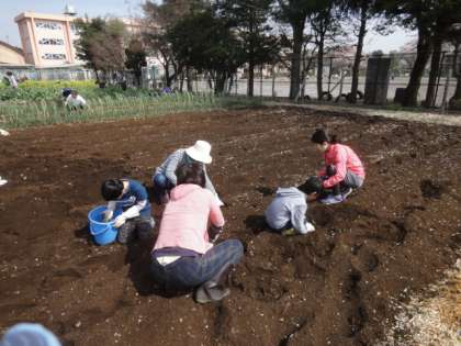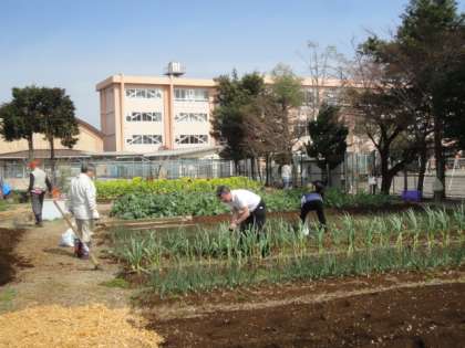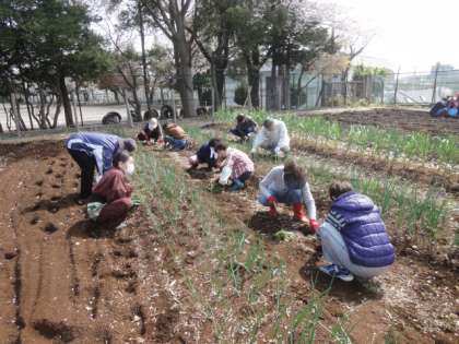 地域・保護者・児童・教職員も加わり、雑草取り。
