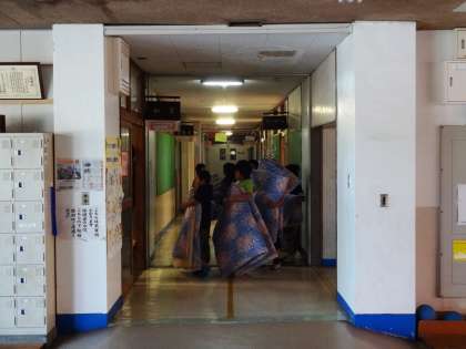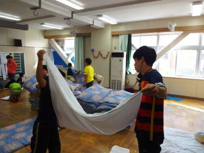 2日目の朝です。自分のことは自分でする。布団の片づけも立派です。