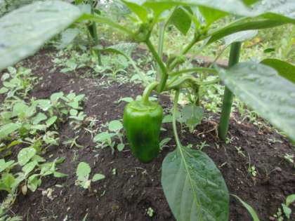 オクラ、ピーマンが実りはじめ、ナスも大きくなっています。
