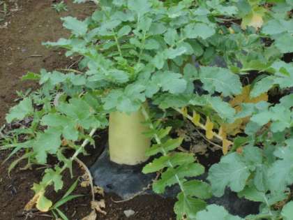 学校農園で収穫した食材を給食に提供しています。今月は大根5回、じゃがいも6回です。