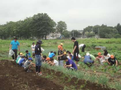 本日の児童集会は、学校農園の草取り作業でした。