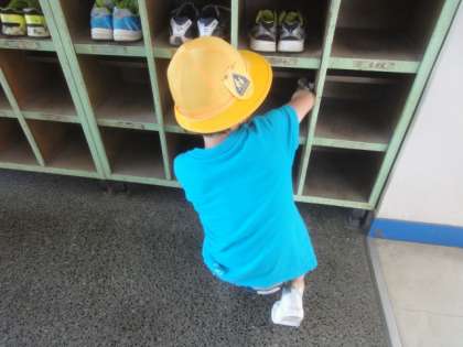 1年生の子が下駄箱掃除をしていました。雑巾で丁寧にふいています。その姿にうれしくなりました。「立派です」