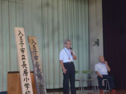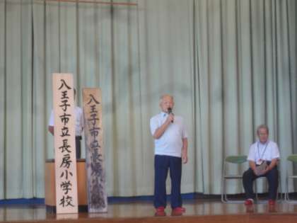 「八王子市立長房小学校」と記した看板が完成しました。校長先生から紹介がありました。学校運営協議会の皆さん、ありがとうございました。
