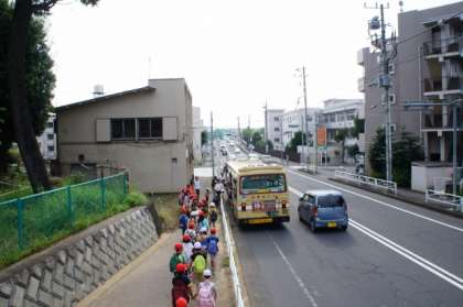 さわやかな出発ができました。バスの運転手さんが本校出身の方で、「体育館にある校歌の『み』の字を彫ったのはぼくです。」と。すると、子供たちが校歌のプレゼント。
