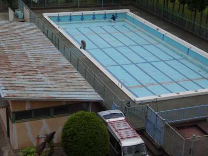 早めにプールの水を抜いて、プールの壁や底のペンキを塗ってもらっています。またプールサイドもコンクリートの痛んでいる所を直しています。今年の夏、気持ちの良いプールで泳ぐ子供たちの姿が楽しみです。