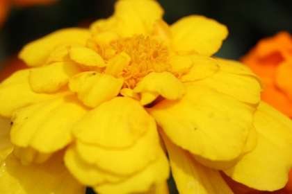 マリーゴールドとコキア(ほうき草)の様子です。