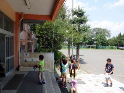 昼休みミストシャワーを使いました。「わー涼しい!」
