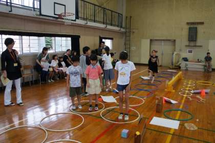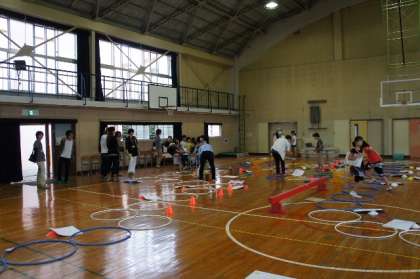 「人間すごろく」です。自分がすごろくになって遊ぶゲームです。
