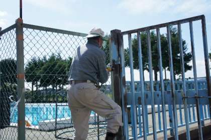 プール扉塗装工事