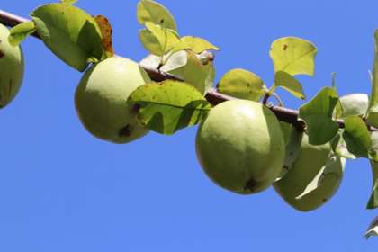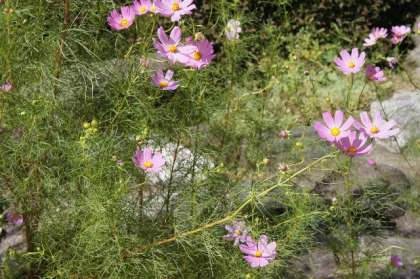 コスモスの花が咲き誇り、ザクロとカリンが実ってきました。