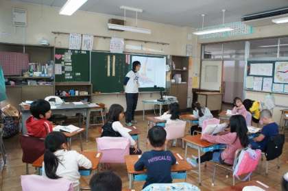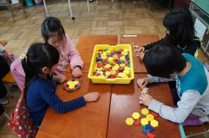 国語「じどう車くらべ」と図工「アートかるた」の学習をしています。