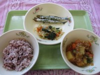 *魚の三味焼きに長ネギと七宝汁のカボチャは長房ファーム産です。