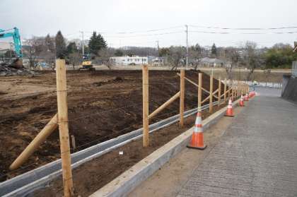 体育館横の坂道門。おおわれていた囲いが取れました。