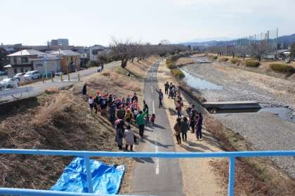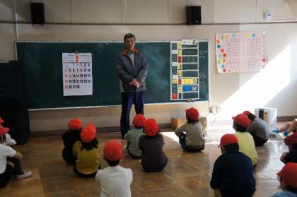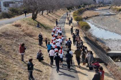 プレイルームにて体操、校長先生のお話、6年生のかけ声の後、出発地に移動して10時50分にスタートしました。