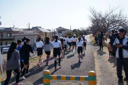 4年生から6年生までがマラソンコースを走りました。がんばりました。