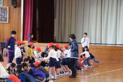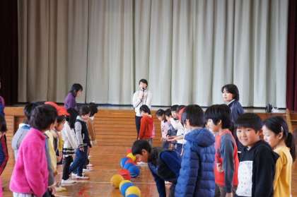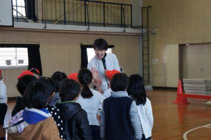 小1〜3年生は中休みに萩原智子先生との運動を楽しみました。ハイタッチして教室に戻りました。