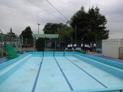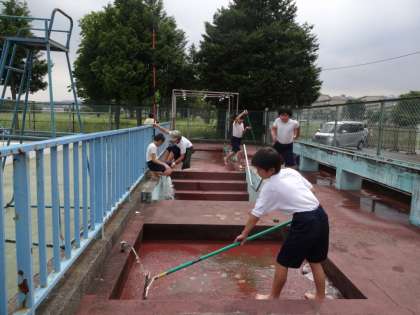 プール清掃です。5年生が頑張ってくれました。いよいよ来週から水泳指導が始まります。
