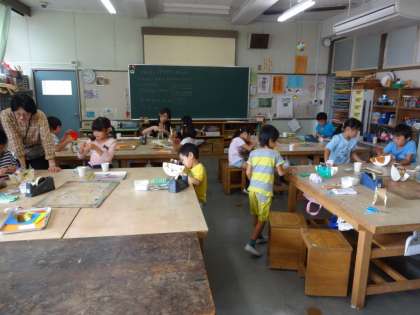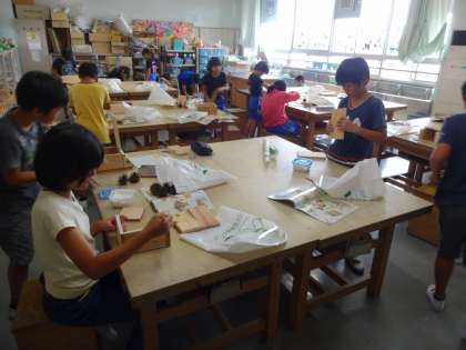 1年生と4年生の図工です。みんな楽しそうに取り組んでいます。