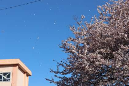 花吹雪と花の絨毯です。