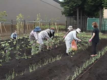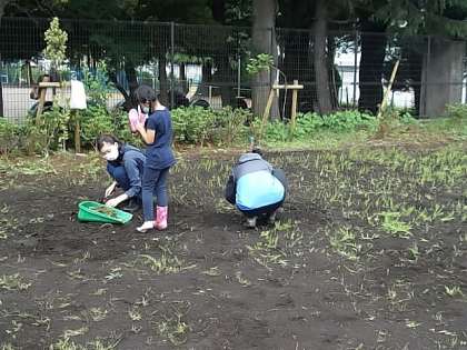 今日の長房ファームの活動では、耕運機等の物置場所を作ったり、八つ頭の種芋を植えたりしました。その前の準備として、畑の専門家の【畑の先生】にお世話になり、畑の耕しから2年生が行ったサツマイモの植え付け、等様々なご指導をいただきました。今日参加していただいた、学運協会長はじめ、協議委員、地域、保護者・児童等の多くの皆様には、「本物の畑みたい。」「長房小学校は畑の学校ですね。」と言ってくださいました。そして、「生長と収穫が楽しみ。」「これからも、畑に参加します。」と連携の高まりを感じました。皆様、本日は、本当にありがとうございました。