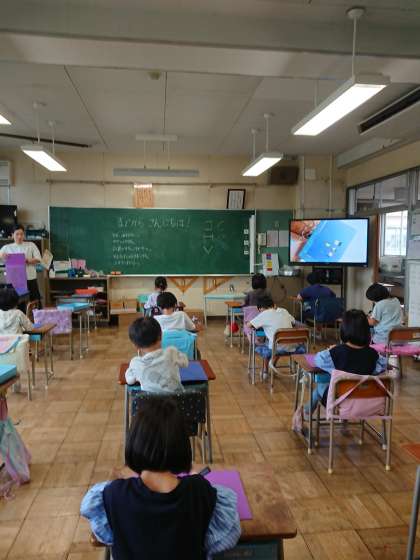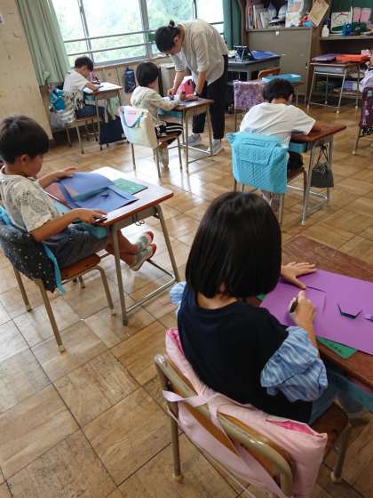 2年1組の図工では、カッターを使った工作の学習をしています。今日は色画用紙に切り込みを入れて、いろいろな形の窓を作りました。みんな約束を守り、安全に注意して、取り組むことができました。