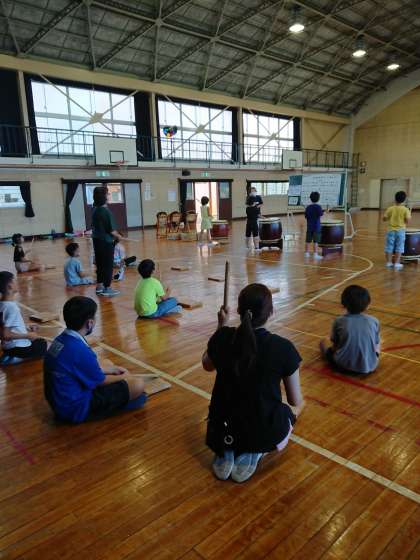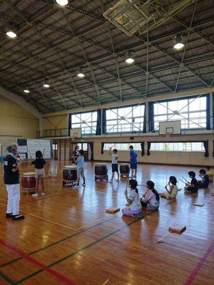 今年度も散田小町太鼓の皆さんが、4年1組の児童に和太鼓を教えてくださいます。9月はすでに2回の授業がありましたが、みんな熱心に取り組んでいて、少しずつリズムを覚えてたたけるようになっています。発表会が楽しみです。三校交流会でも発表する予定です。