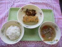 ❖今日の給食❖*ごはん*厚焼き卵*豚汁*ほうれん草の彩和え*牛乳        ...