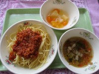 ❖今日の給食❖*スパゲティーミートソース*はくさいスープ*ゆず蜜フルーツ*牛乳 ...