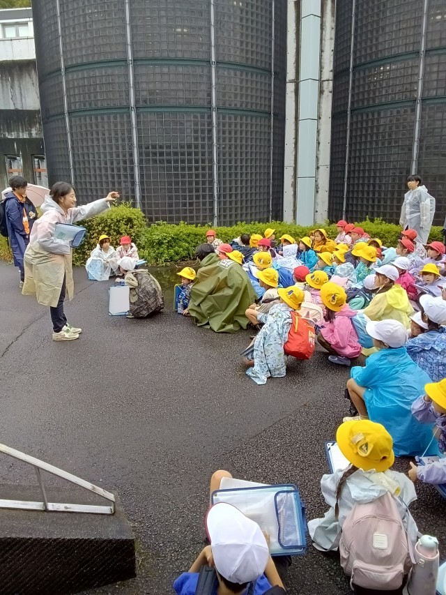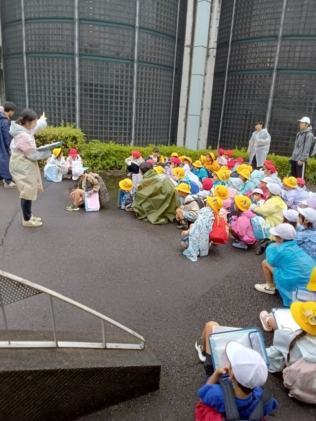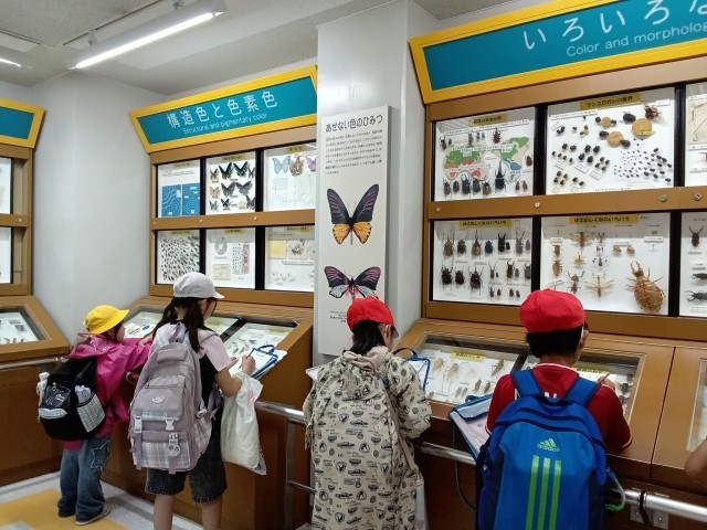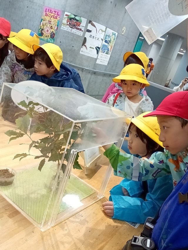 昆虫館のもう一つの建物は、縦割り班で見学です。