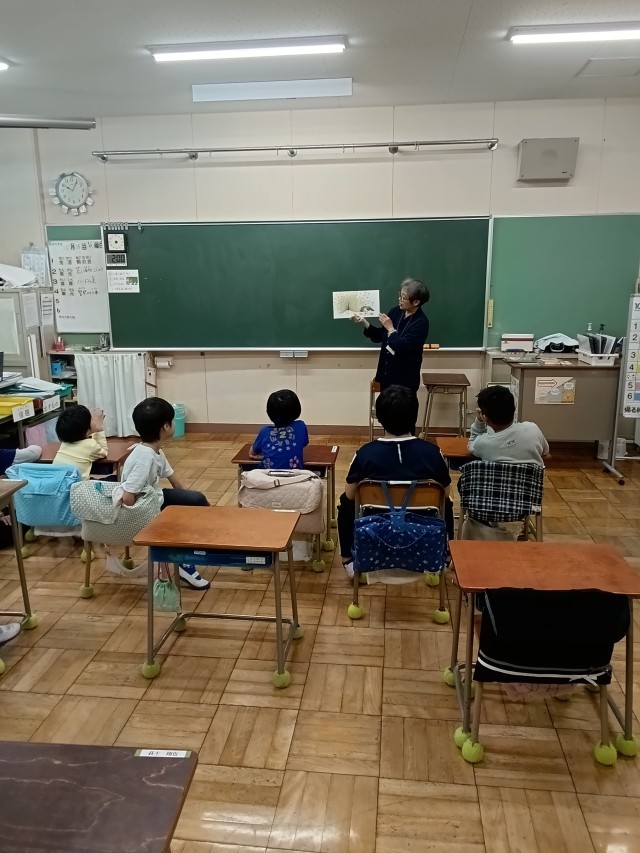 八王子おはなしの会の方に来ていただき、5つの本を読み聞かせしてもらいました。