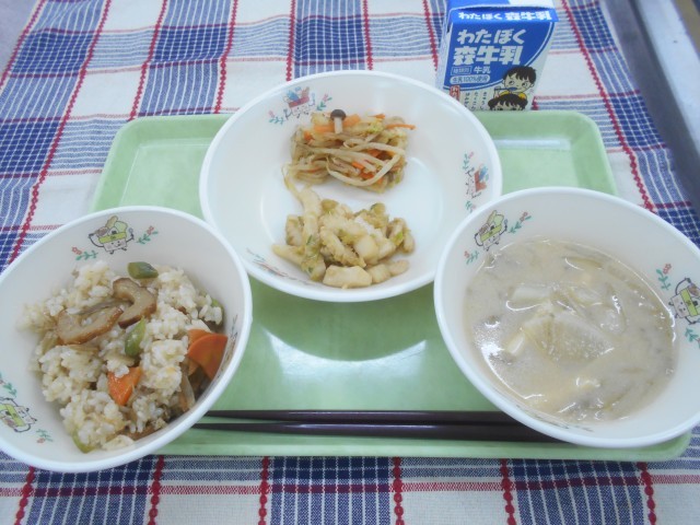 給食では、鳥取県の伝統的な食材「あごちくわ」や