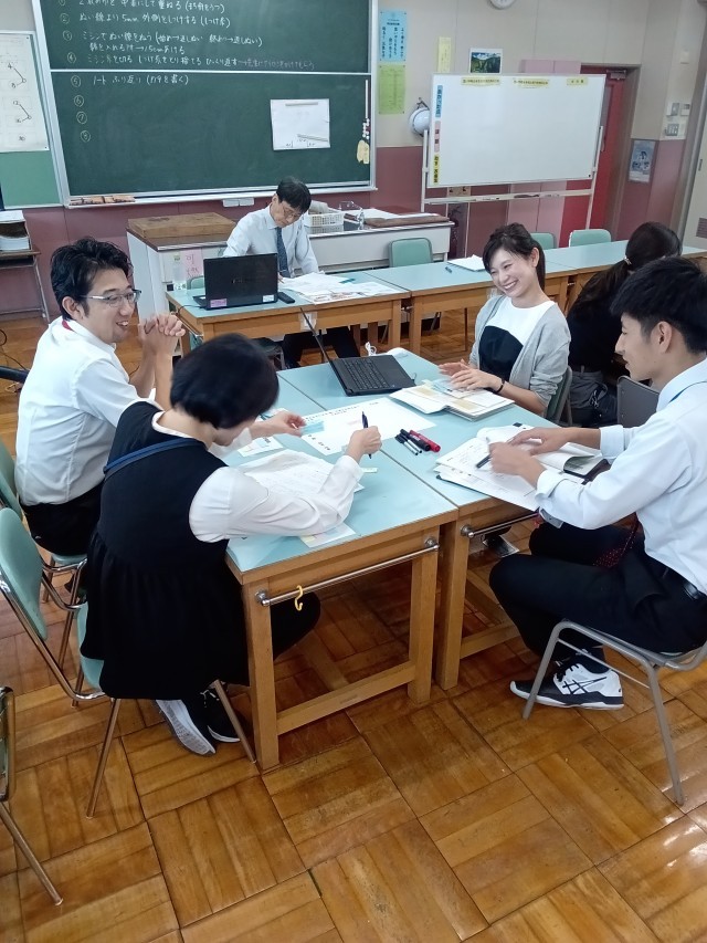 研究授業を見た後、教員が4グループに分かれて協議会を行いました。