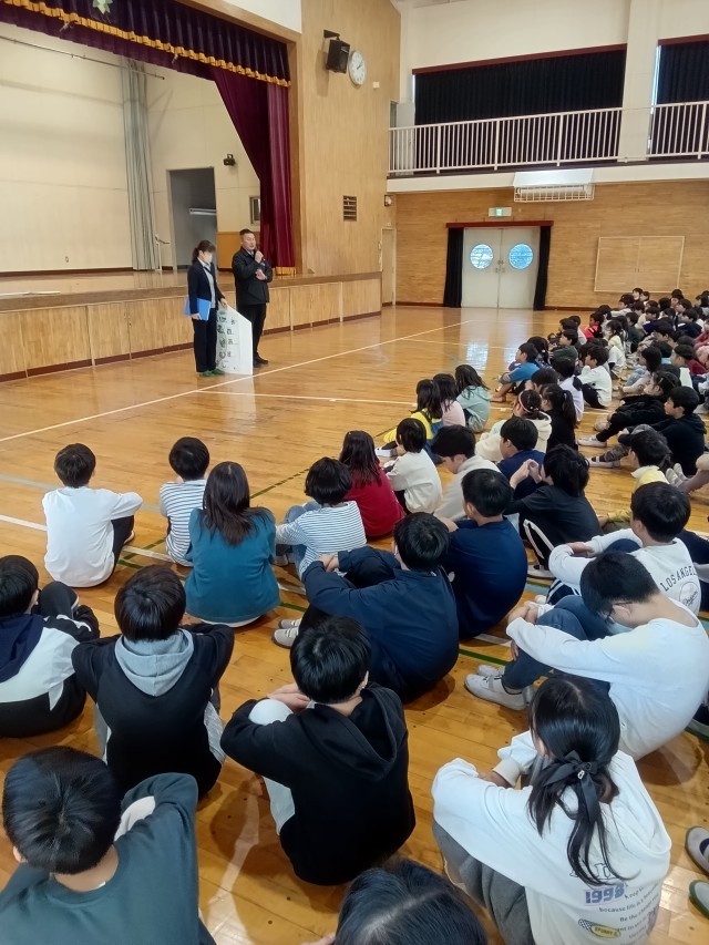 南大沢警察署の方にも来校いただき、不審者に遭遇した時の対応(いかのおすし)についてお話いただきました。
