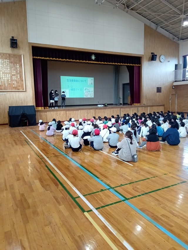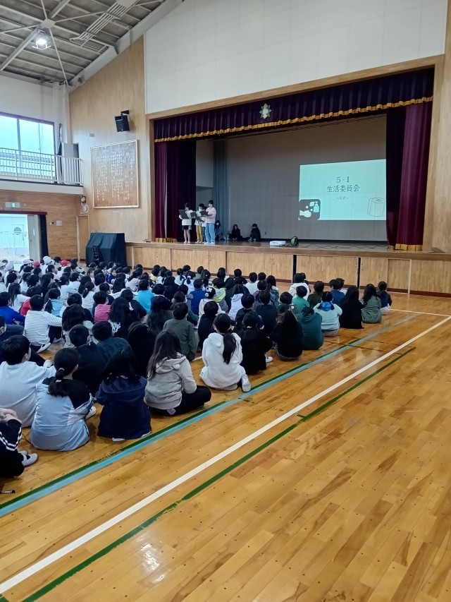 生活委員会の5.6年生が、委員会の仕事内容や、保健室での過ごし方などについて発表しました。