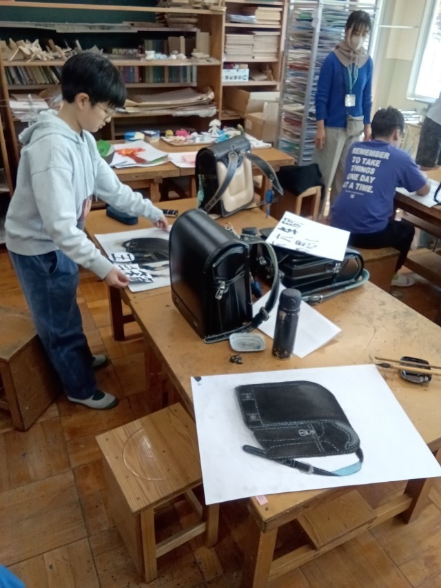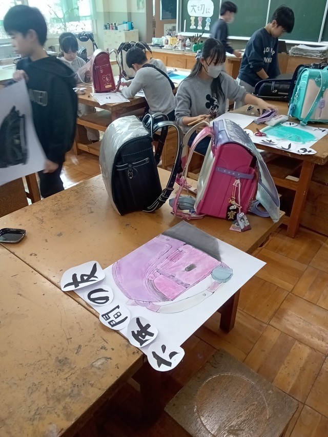 6年生は、これまで小学校生活を共に過ごしてきたランドセルの絵を描いています。