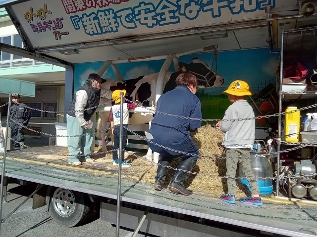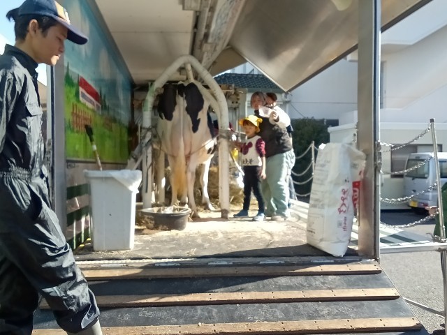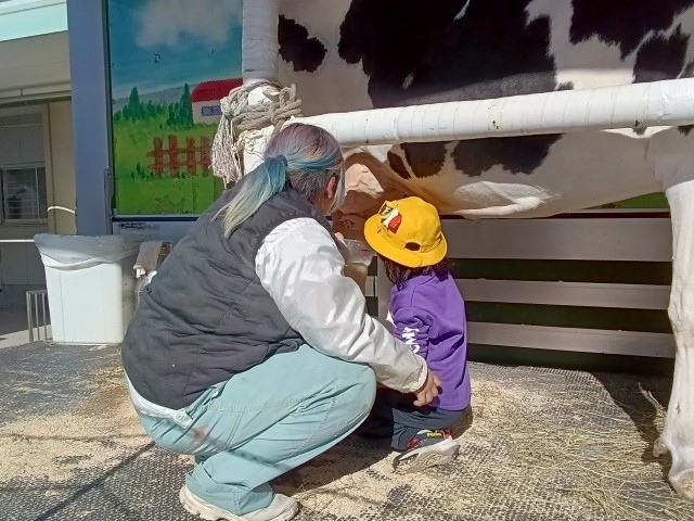 JA八王子の方にご協力いただき、搾乳体験を行いました。